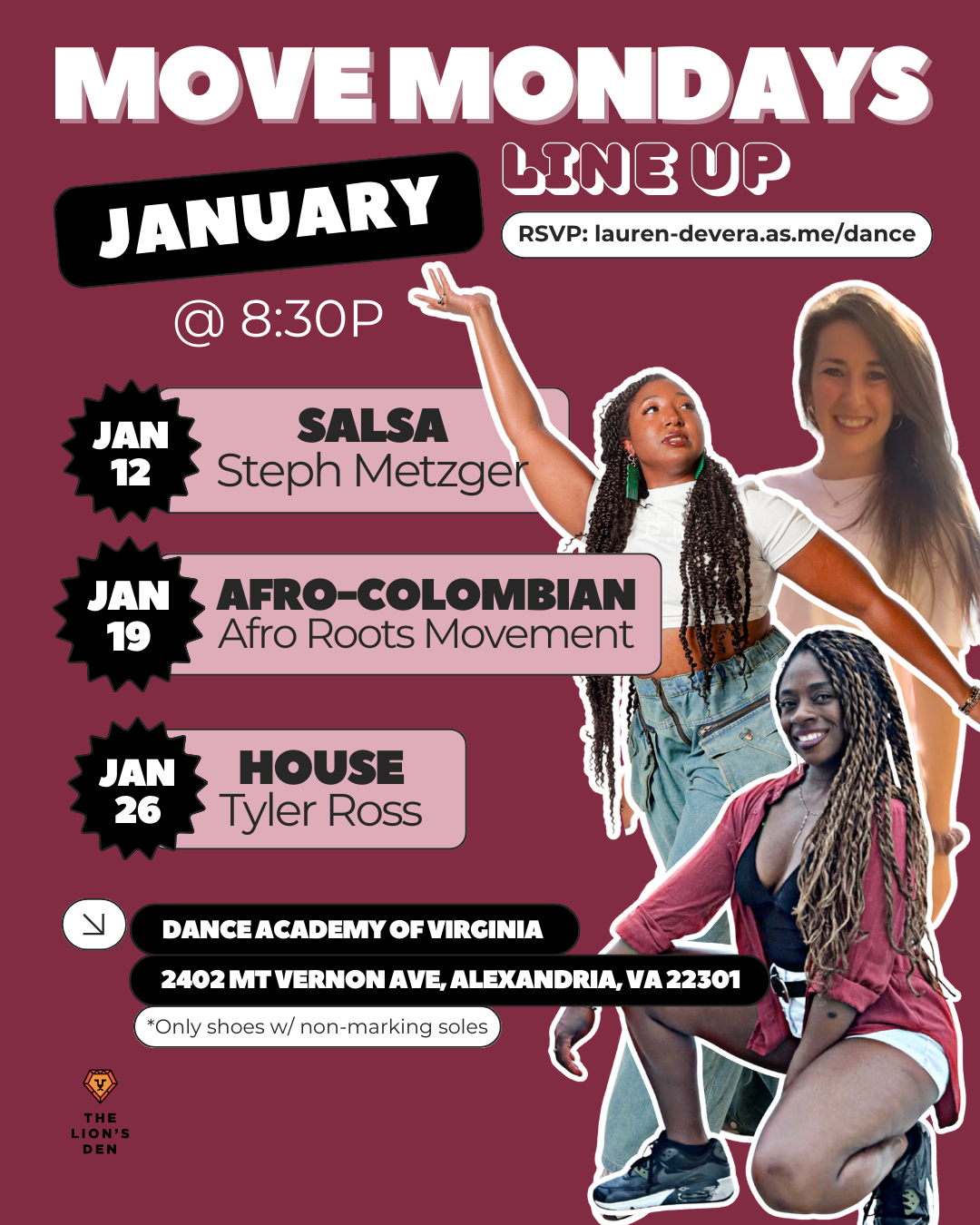 Visit https://linktr.ee/thelionsdendmv for upcoming classes and events!